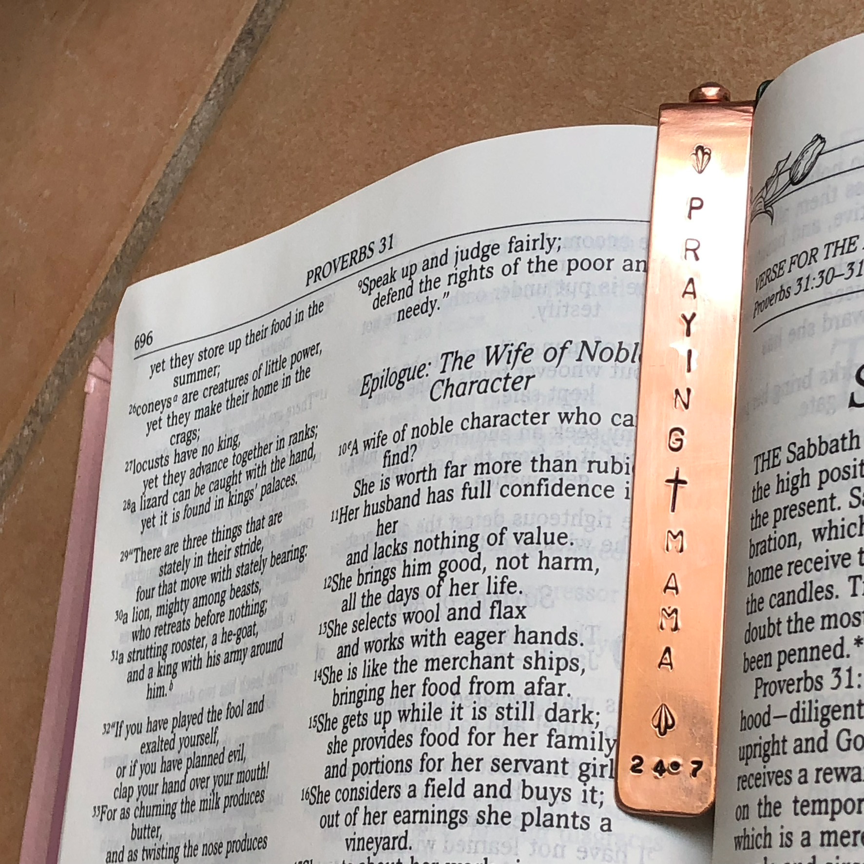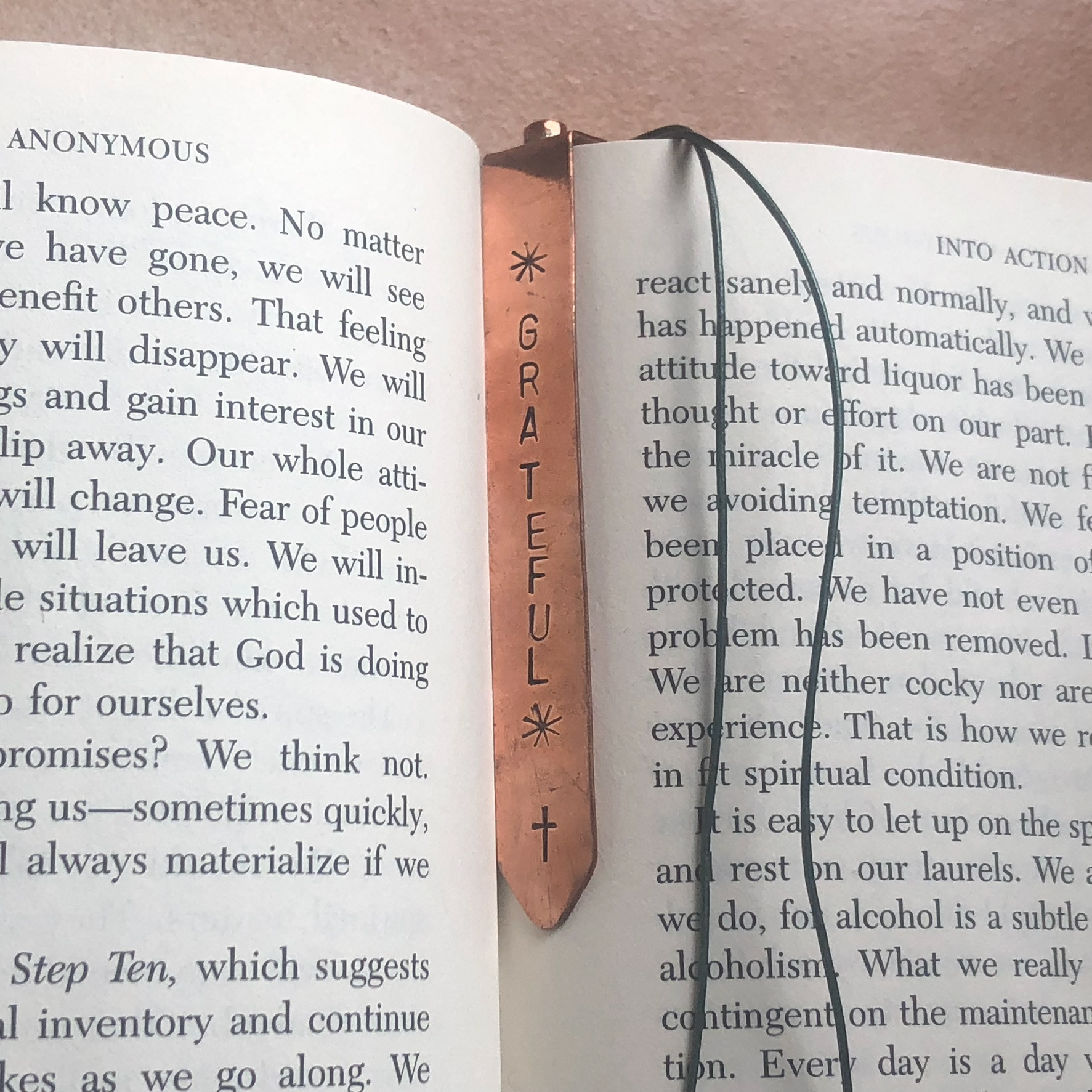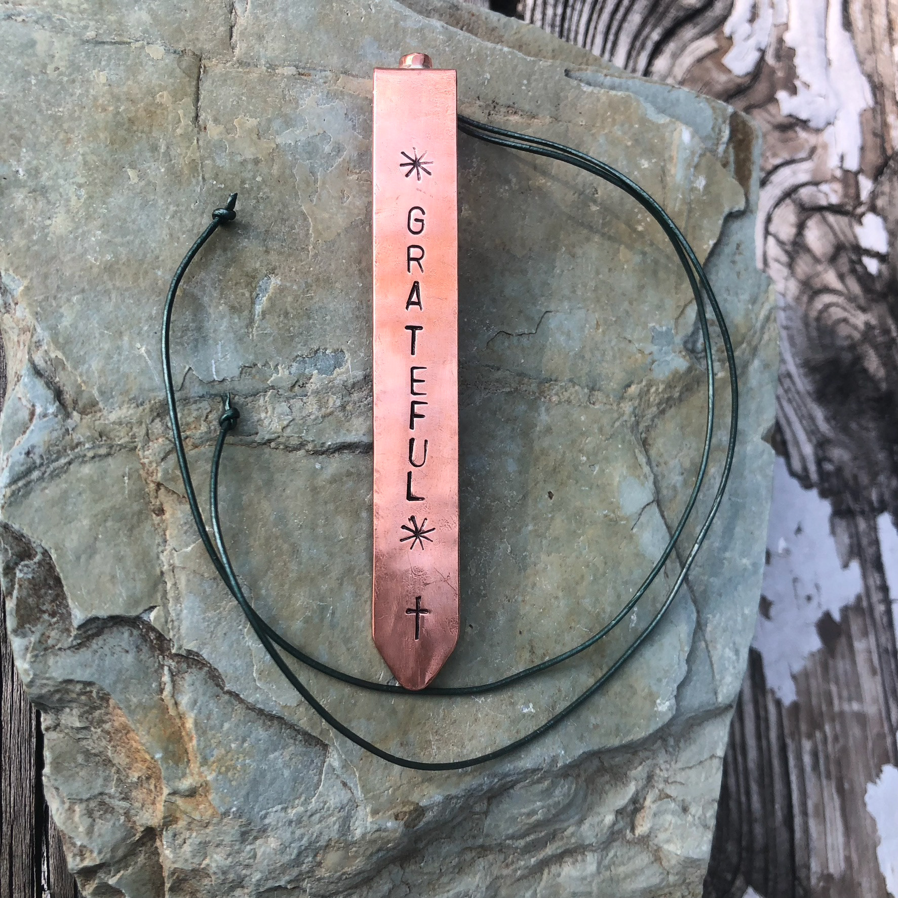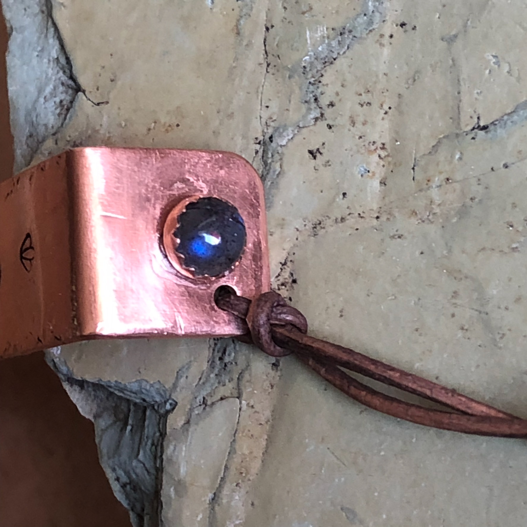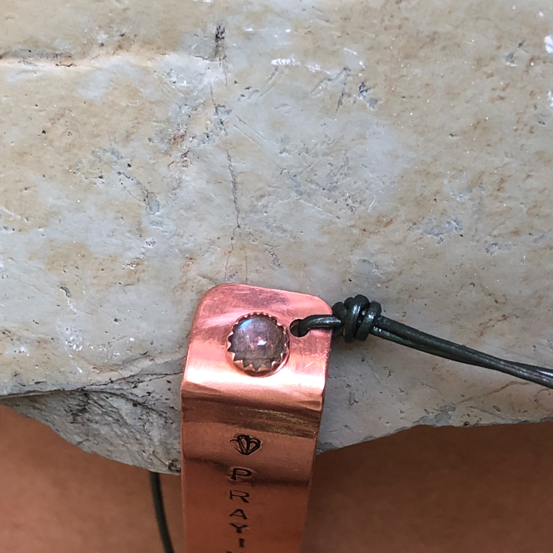 Hand-stamped, copper bookmarks with optional gemstone and leather page markers.